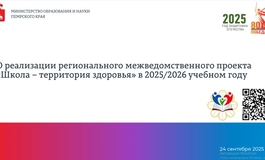 24 сентября 2025 года прошло установочное совещание по вопросам реализации на территории Пермского края межведомственного регионального проекта «Школа - территория здоровья». Совещание было организовано для образовательных организаций, вошедших в проект в новом 2025/2026 учебном году...